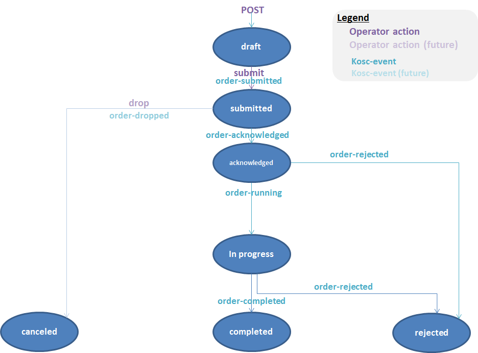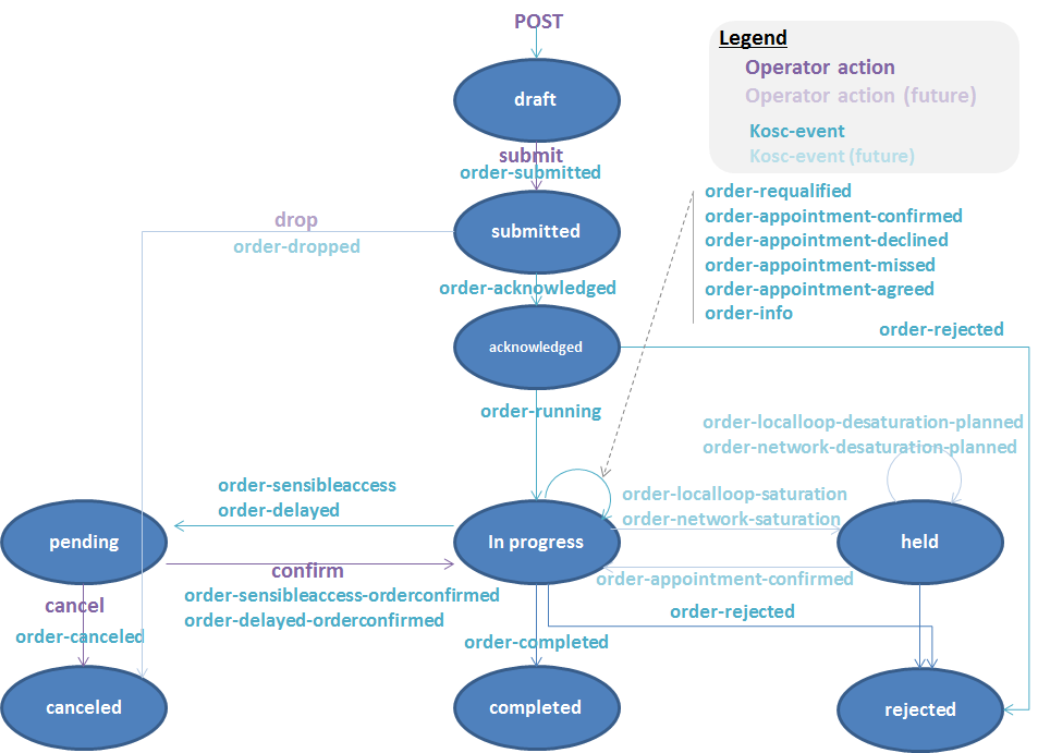 La nomenclature de ces diagrammes ne reflète plus exactement les états disponibles dans la version 2 de l'API. Ils seront prochainement mis à jour.